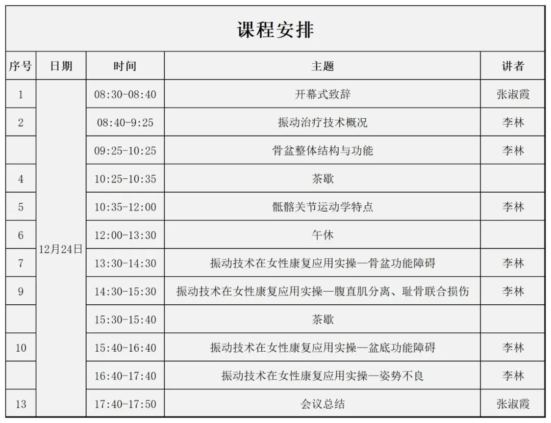 本次培训特邀请青岛大学附属医院康复医学科副主任治疗师、康复医学与理疗学硕士李林老师分享振动治疗技术在女性康复的应用理论和实操。(课程安排详见附件)