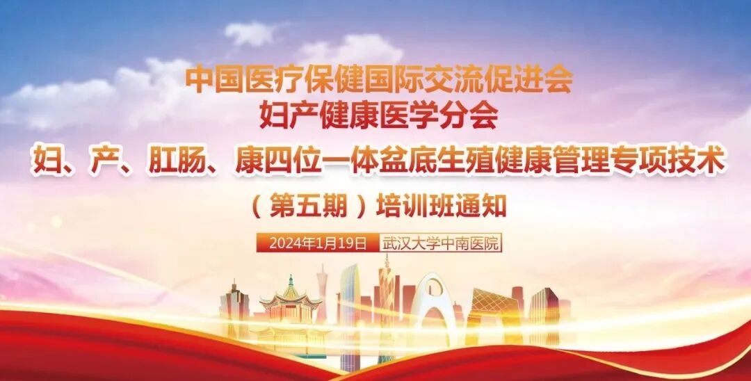 中国医疗保健国际交流促进会(简称“中国医促会”)妇产健康医学分会妇、产、肛肠、康四位一体盆底生殖健康管理专项技术(第五期)培训班将于2024年1月19日-20日在湖北省武汉市召开。