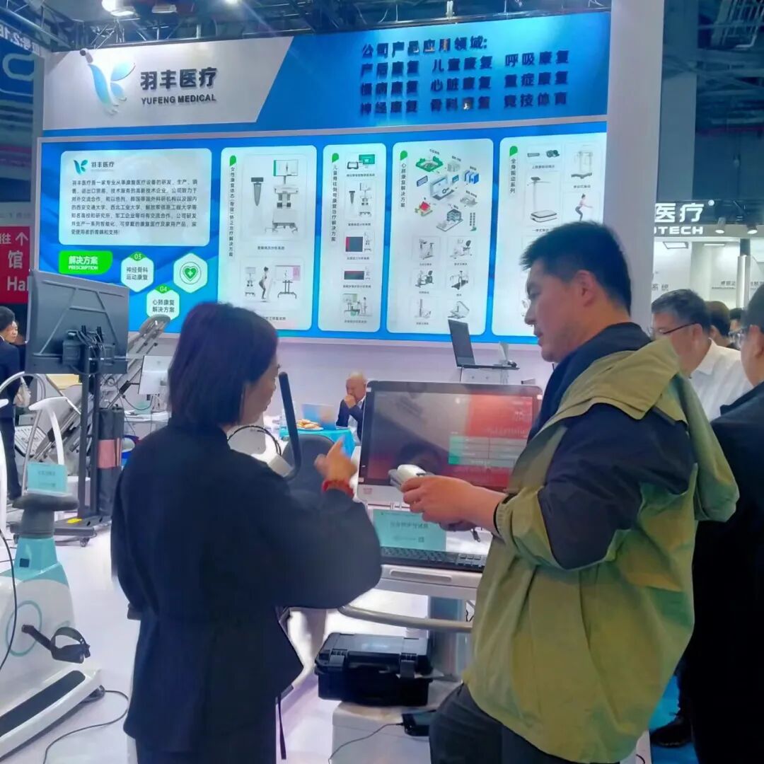 展会期间,羽丰展位参观嘉宾络绎不绝,市场部人员为驻足体验羽丰产品的康复行业企业家进行了细致的产品讲解说明,并在羽丰产品讲师的现场指导下,进行了全方位、系统性的体验。