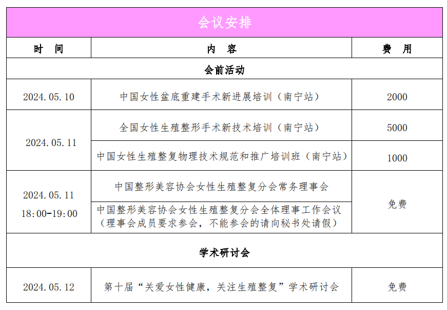 2. 2024 年 05 月 11 日 全国女性生殖整形手术新技术培训(南宁站)