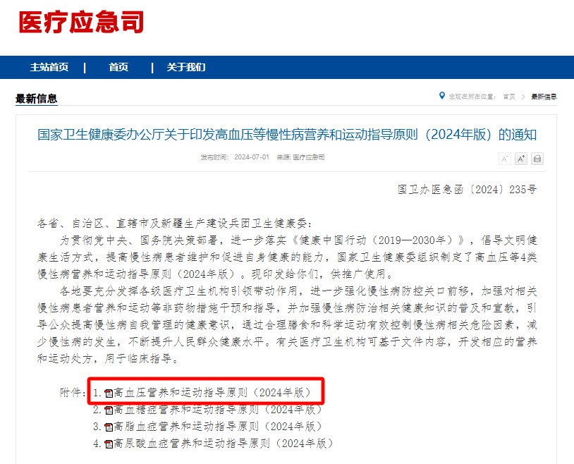 近日,国家卫生健康委办公厅正式发布了《高血压营养和运动指导原则(2024年版)》,该指导原则旨在通过生活方式干预,特别是营养与运动干预,从而有效预防和控制高血压的发生发展、提升居民健康水平。
