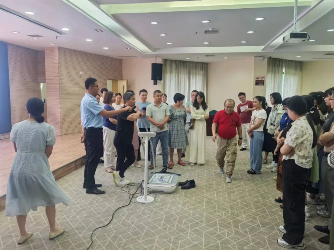 靳辉老师亲自主持,盛情邀请现场参会者亲身体验羽丰振动训练仪的独特魅力。在体验过程中,他根据体验者不同的身体感觉,细致入微地纠正每一位体验者的动作姿势,确保每位参与者都能获得最佳的训练效果。体验环节结束后,参与体验的嘉宾们纷纷表示,身体得到了前所未有的放松与舒缓。显著的姿态变化,不仅让体验者本人感到惊喜,更是引得现场众人连连赞叹,对羽丰振动训练仪充满了惊叹好奇。