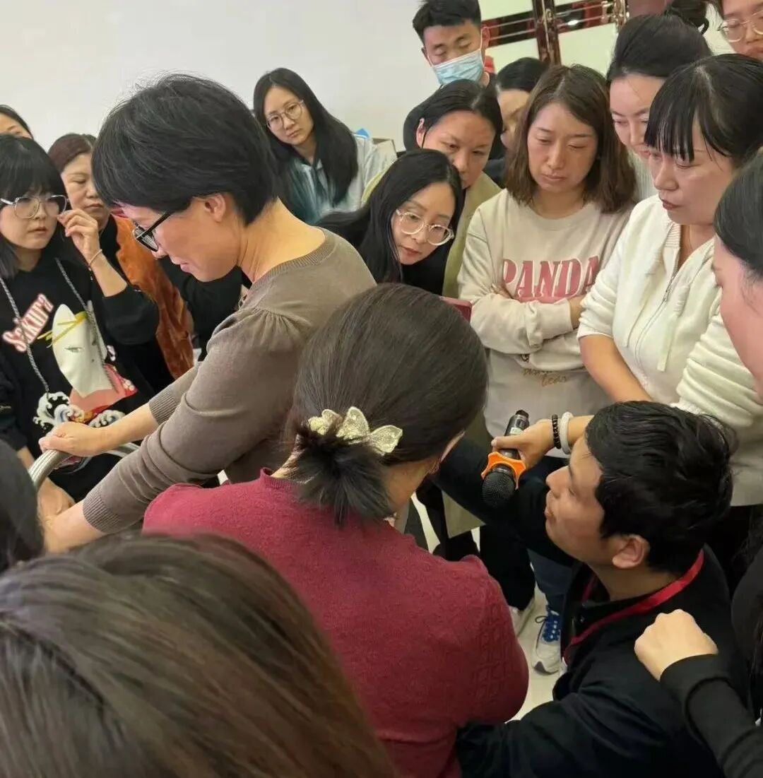 紧接着,培训进入了实操演示环节。李林老师现场展示了一系列专业且精细的手法评估技巧,这些技巧覆盖了骨盆前倾、骨盆旋转、耻骨联合分离以及腹直肌分离等多种常见骨盆问题的评估,每一步操作都配以详尽的解释,确保每位学员都能清晰理解并掌握。老师的演示不仅准确无误,更充满了人文关怀,让在场每位老师都深受启发。