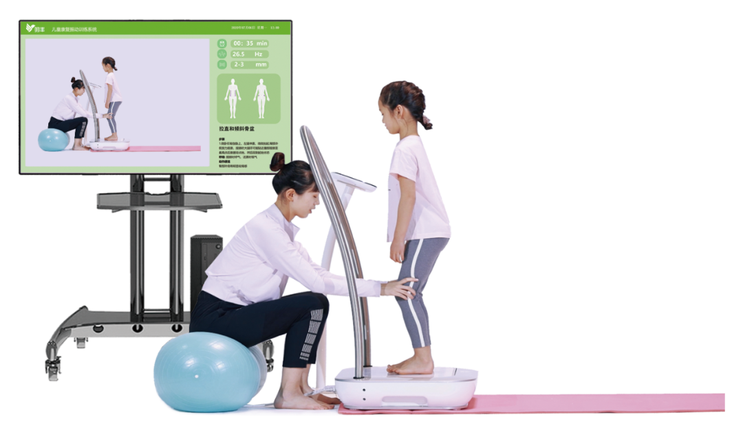 允许合理的身体活动 提供可移动的坐垫,让孩子在轻微晃动中释放能量。 允许使用小工具,满足手部和口腔的感官需求。 科学筛查和智能训练 多动症孩子的坐姿问题可能伴随脊柱发育异常。 脊柱侧弯智能筛查系统 采用云计算与大数据技术 ,结合运动生物力学与人体工学 ,集测量 、评估和用户管理为一身,实现了被测端、筛查端与管理后台多端协同作业,能极大地提高筛查效率与筛查精度。系统配备智能电子脊柱尺,支持有序/无序双模式筛查,无需人工触诊即可在复杂环境中完成精准评估,大幅提升筛查效率和准确性。 儿童康复振动教练系统 —科学改善多动症孩子的核心肌群 多动症(ADHD)孩子常因核心肌群弱而难以保持稳定坐姿,而振动训练仪提供了一种高效、科学的解决方案。 振动训练仪基于人体自然步态设计,通过左右交替倾斜运动,模拟行走时骨盆的交替变化,但速度更快、强度更精准。这种运动模式能: 激活全身肌群:从下肢到躯干的肌肉依次收缩,尤其是核心肌群(腹横肌、多裂肌等)。 提升协调性:当频率≥12Hz时,肌肉从自主收缩转为生理性牵张反射,显著增强肌肉间的协调能力。 改善代谢循环:振动刺激可促进下肢和躯干的血液循环,加速新陈代谢。 调整学习环境 分段学习:劳逸结合,合理安排休息时间。 站立式学习:提供可调节高度的桌子,允许孩子交替坐和站。