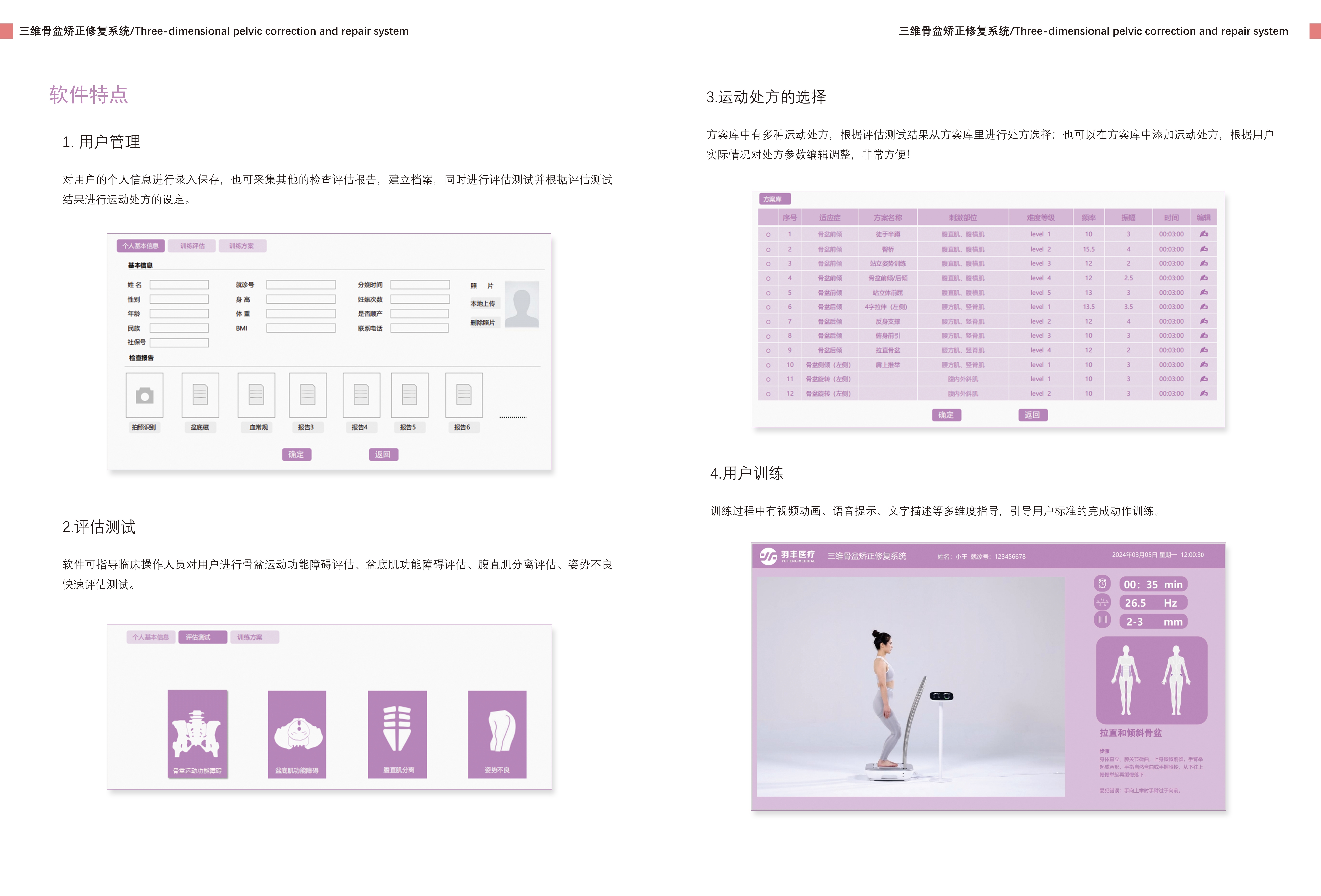 三维骨盆矫正修复系统是基于人体行走的盆骨及双下肢步态模式而设计的左右交替倾斜运动模式的设备。可以引起两侧骨盆的交替倾斜同行走时的模式相似,而且速度更快。当振动达到一定频率时,肌肉开始产生牵张反射,能更好的锻炼肌肉间/肌肉内的协调性,激活从下肢到躯干的所有肌群,使全身肌群得到高效的训练。