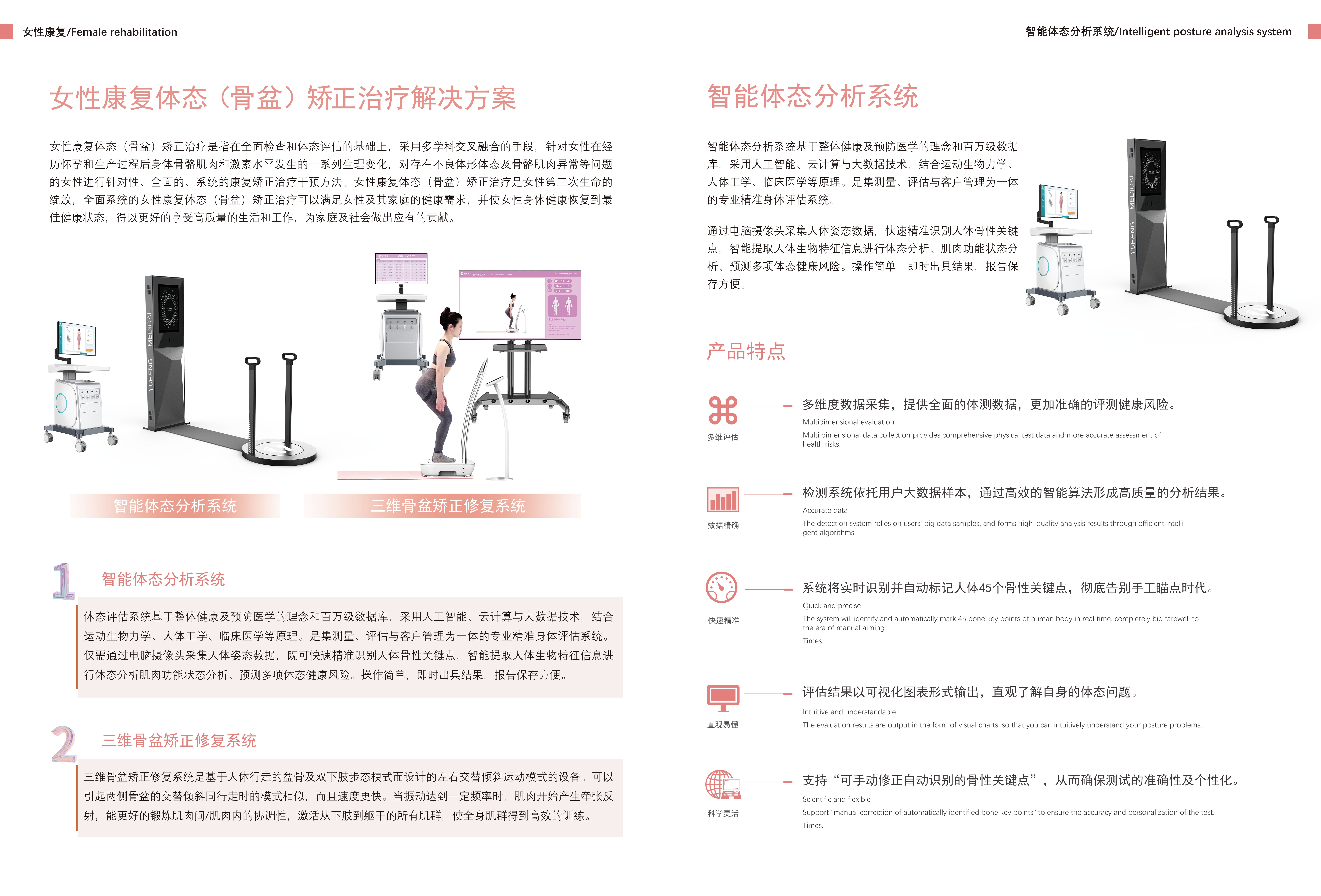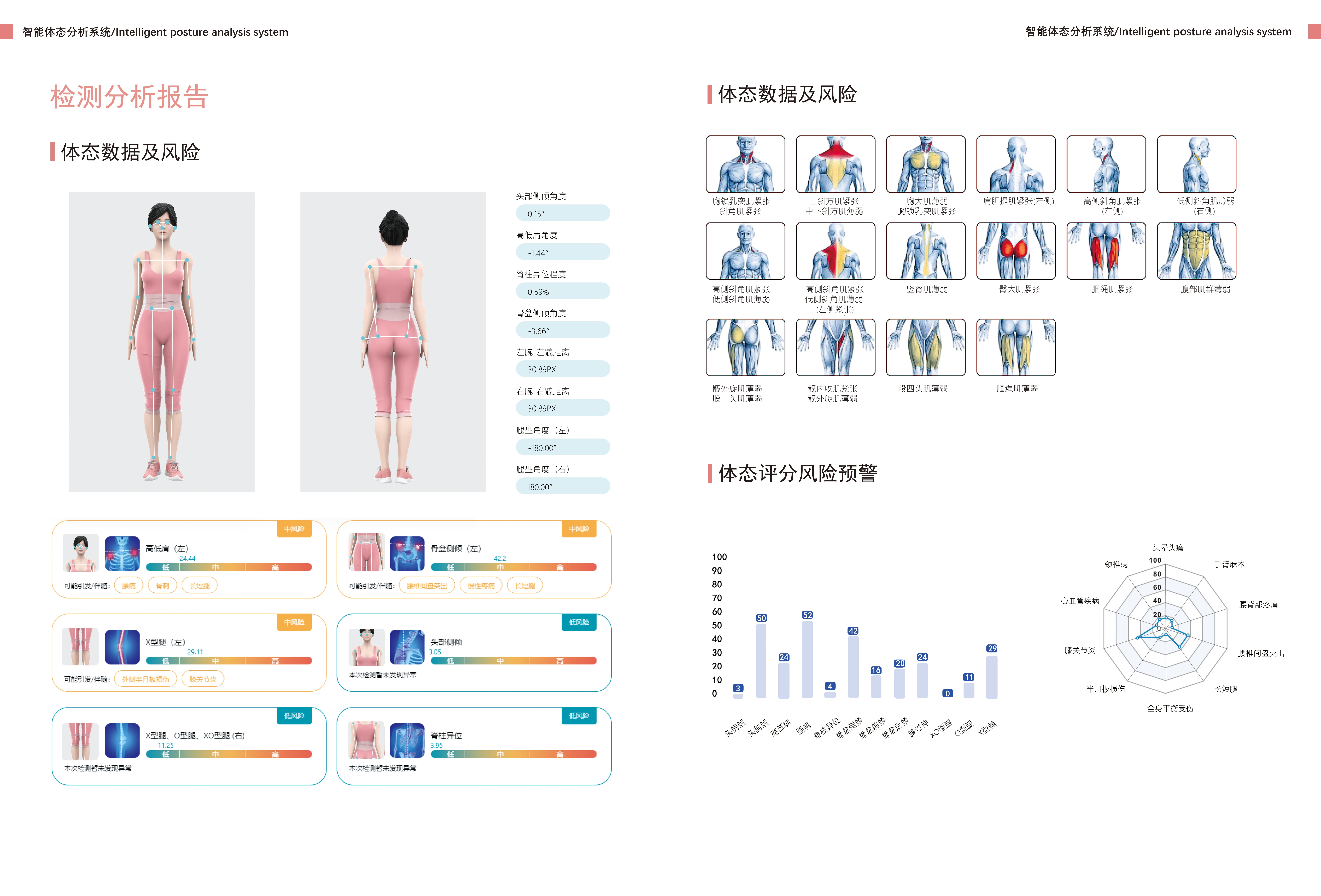 基于整体健康与预防医学理念开发的智能体态评估系统。依托百万级数据库支持,系统融合人工智能、云计算与大数据技术,并结合运动生物力学、人体工效学及临床医学等多学科原理,构建出一套集精准测量、科学评估与高效客户管理于一体的专业身体评估解决方案。