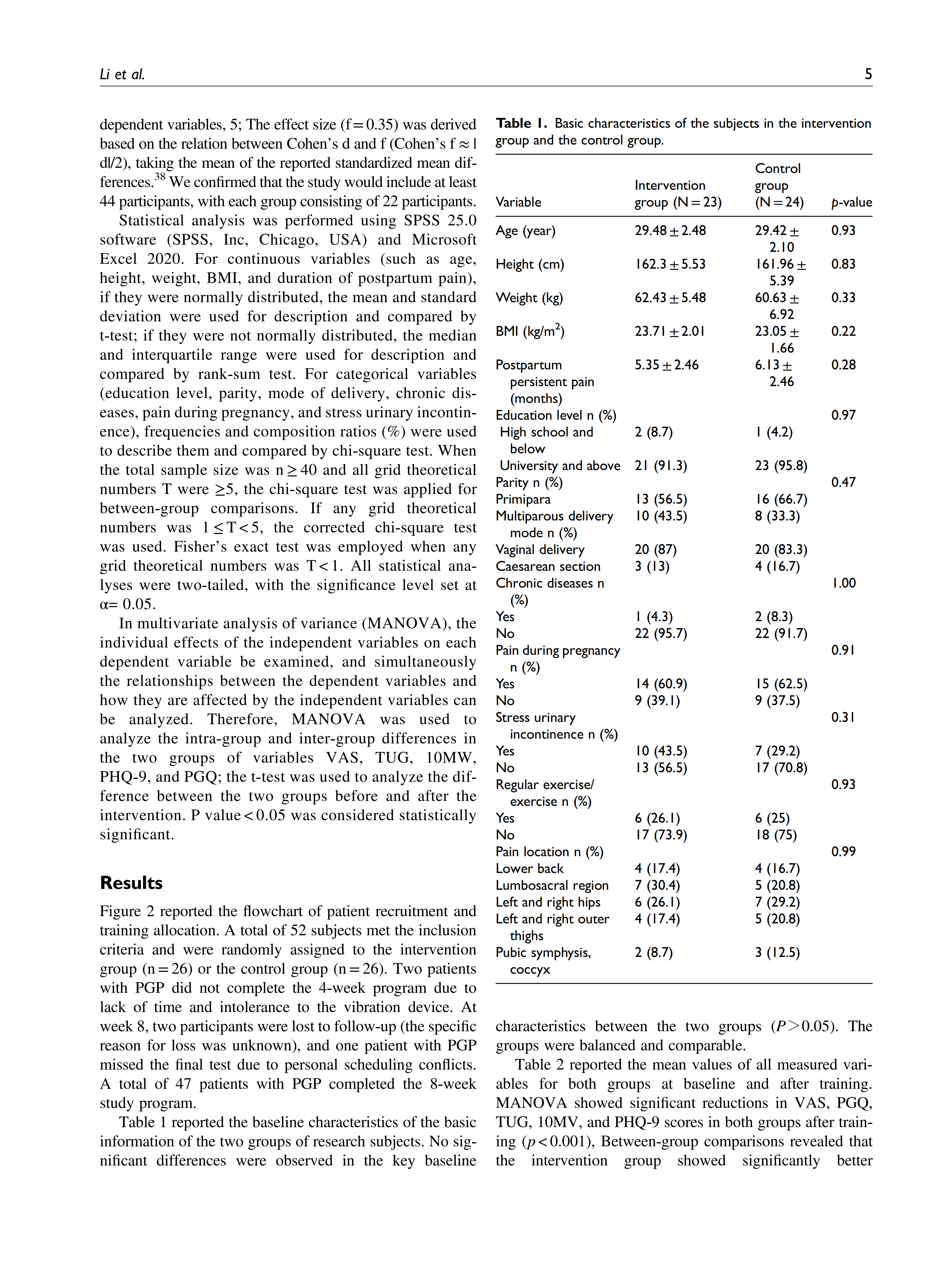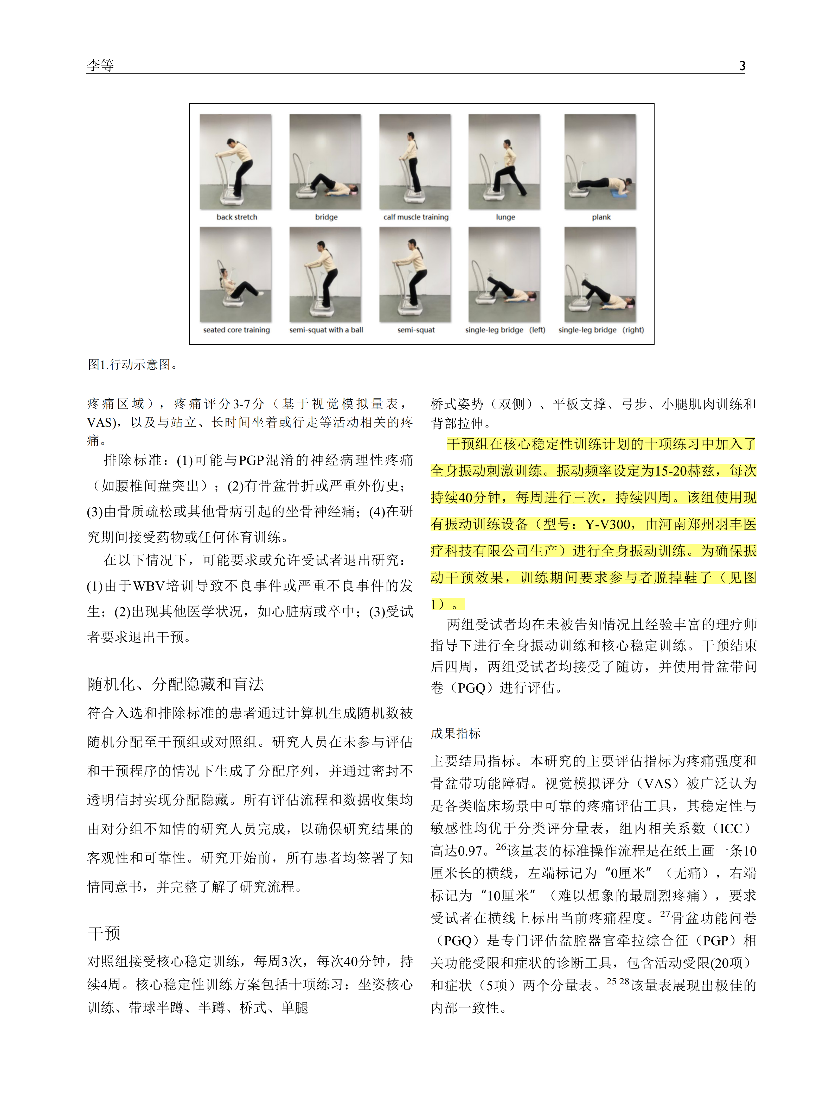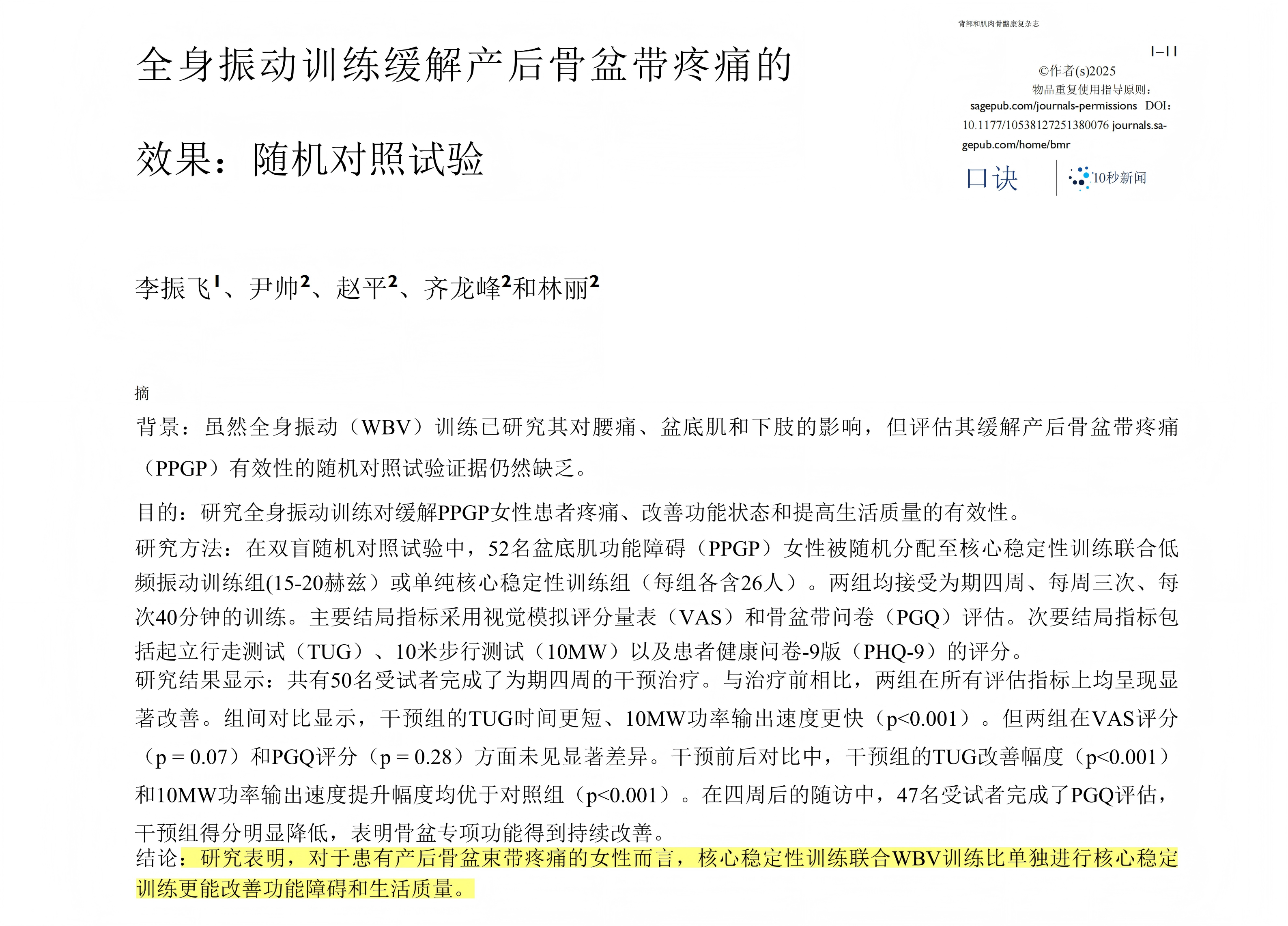 ●本研究旨在填补这一空白,探讨WBV联合核心训练对PPGP患者的疼痛、功能和生活质量的改善效果。