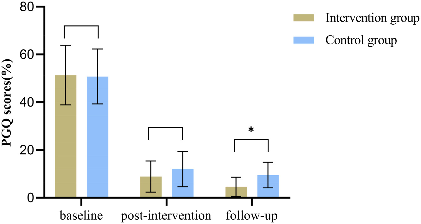 ●随访结果:干预组在PGQ评分上表现出更持久的改善。