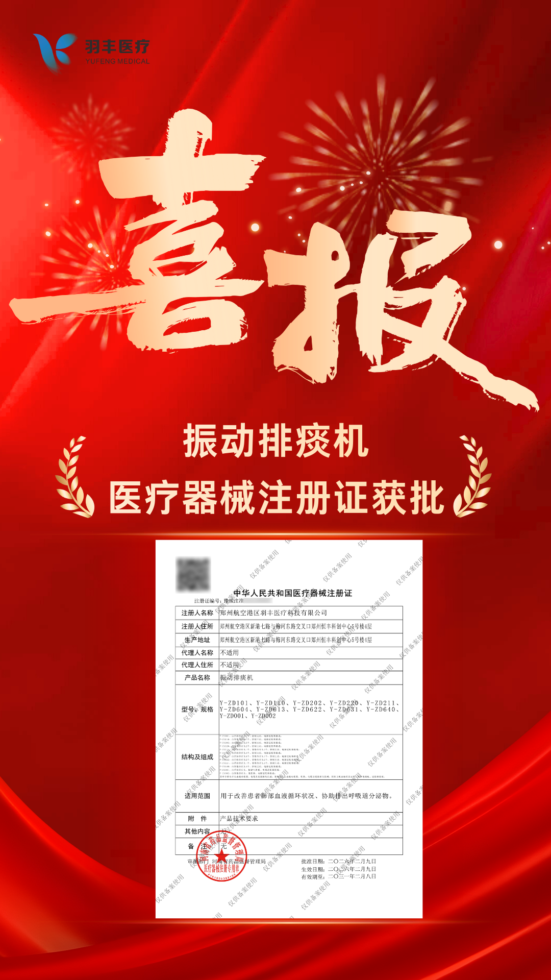 重磅!恭喜羽丰医疗振动排痰机医疗器械注册证获批!