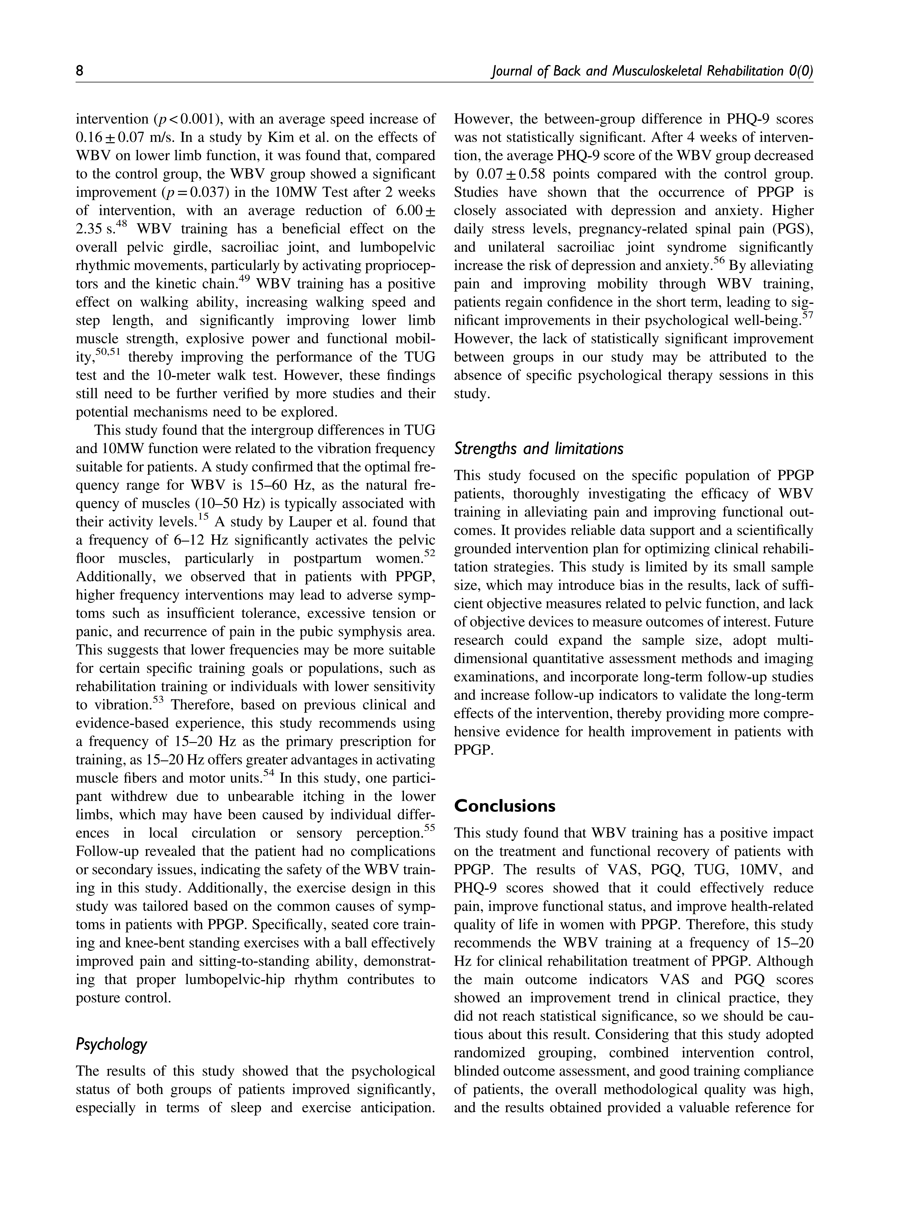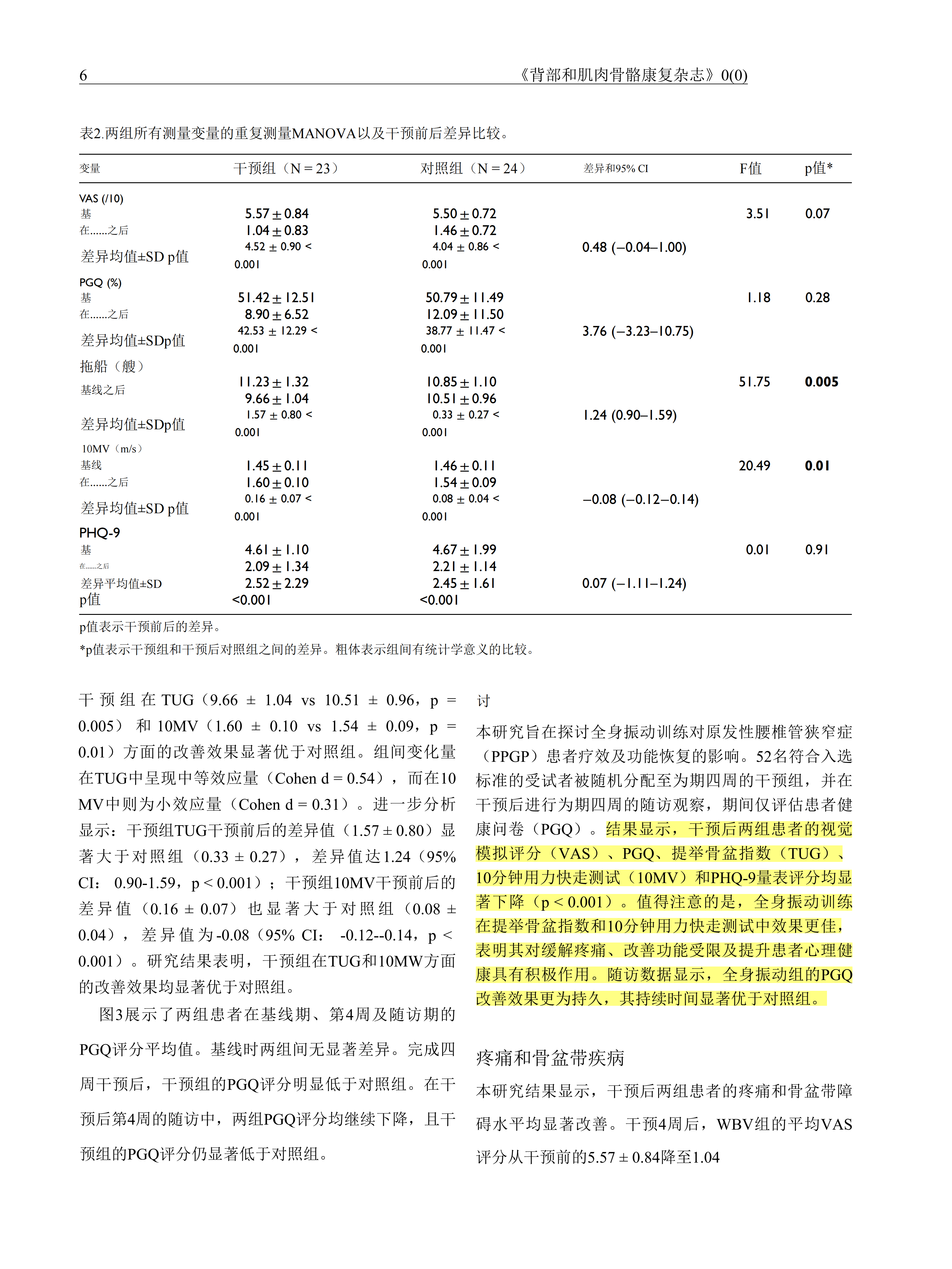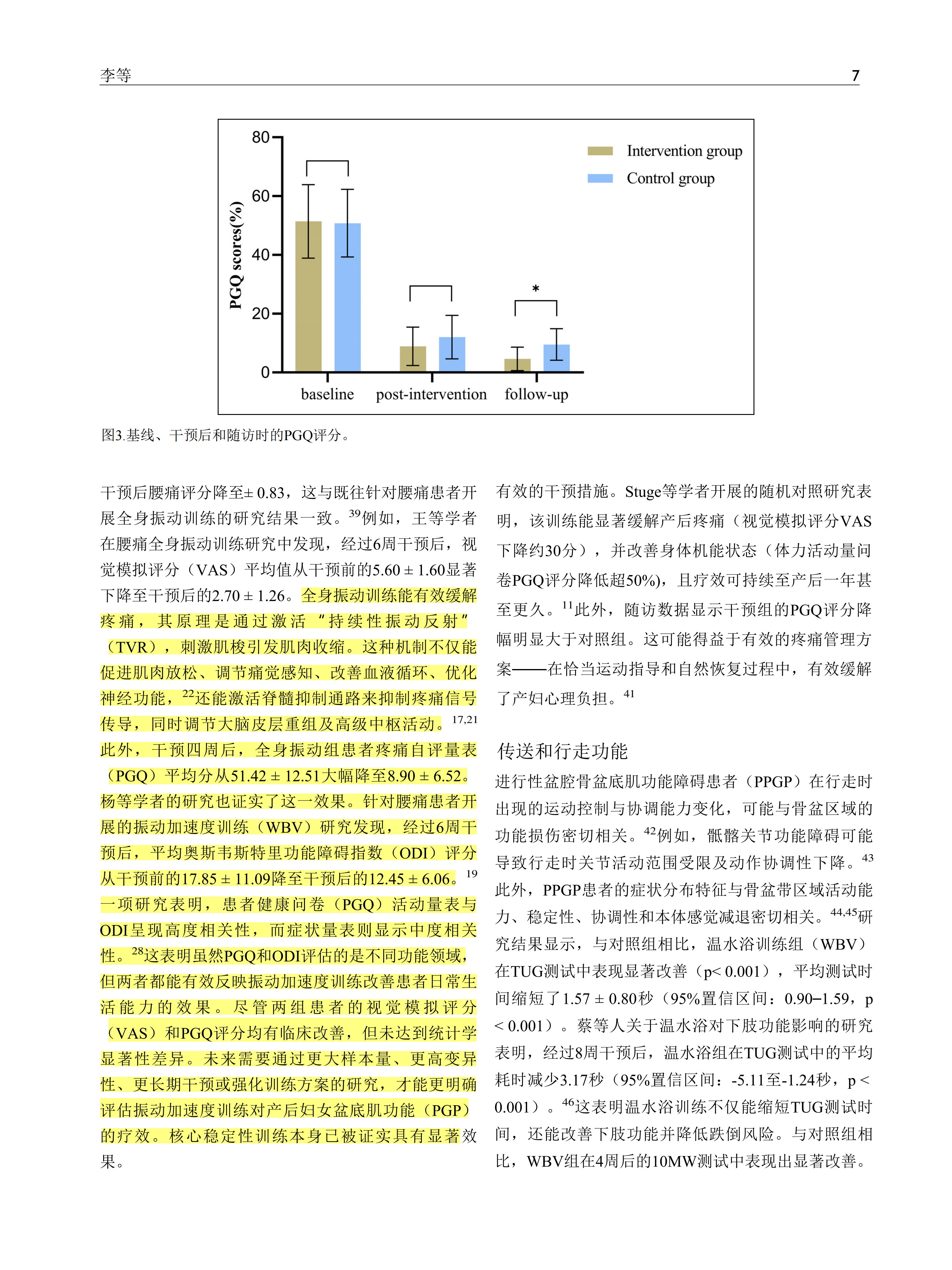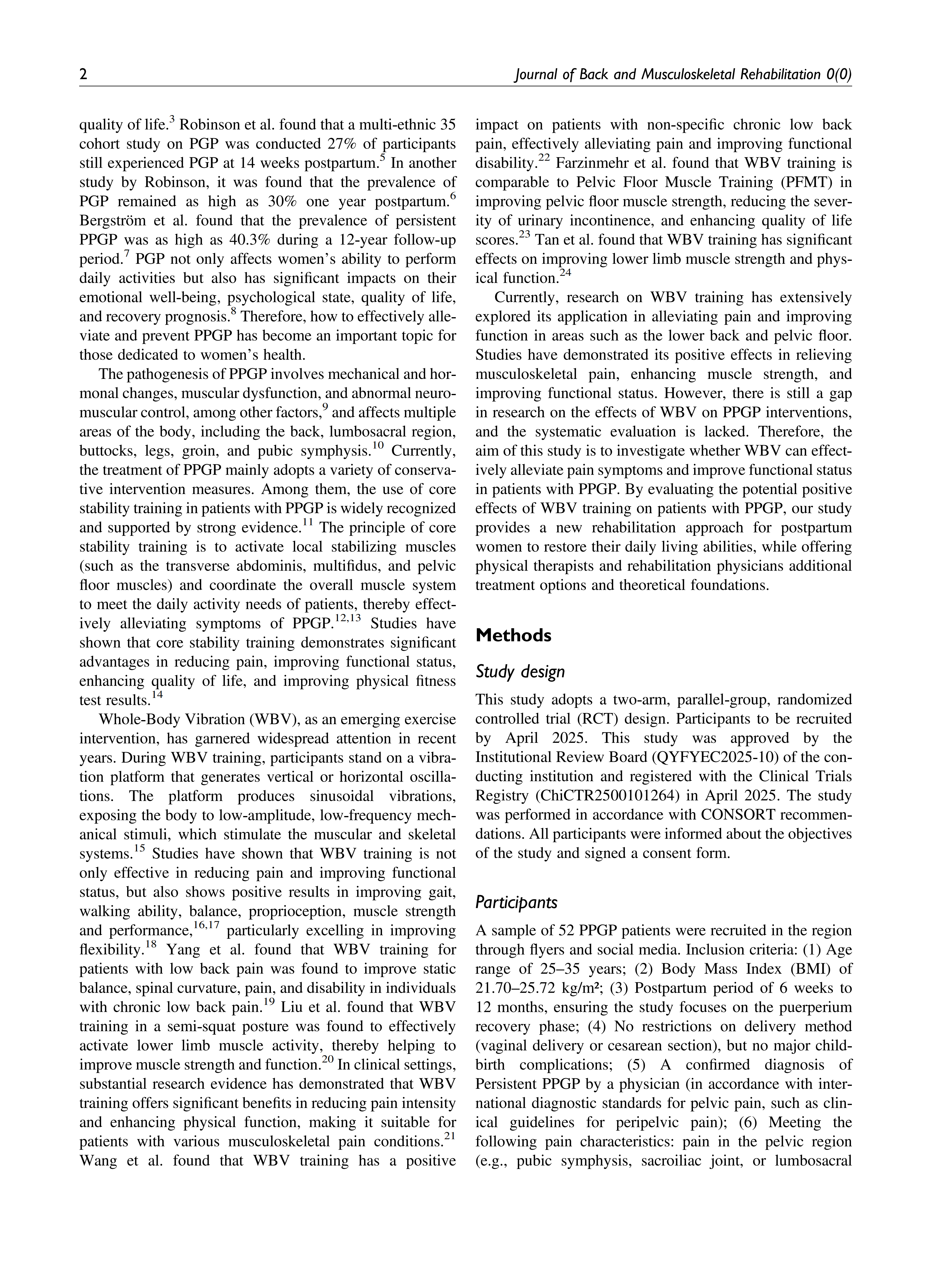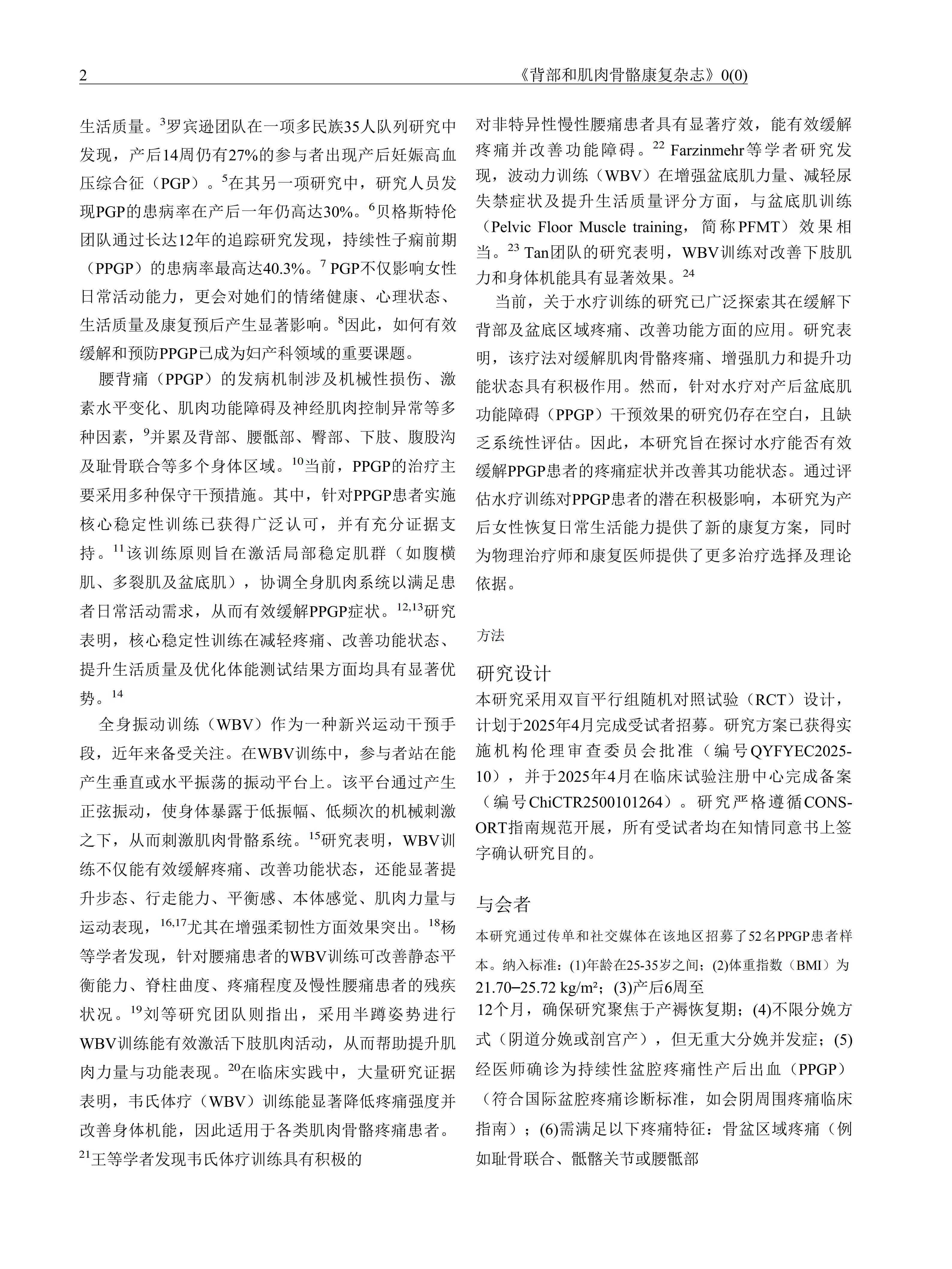 ●本研究旨在填补这一空白,探讨WBV联合核心训练对PPGP患者的疼痛、功能和生活质量的改善效果。