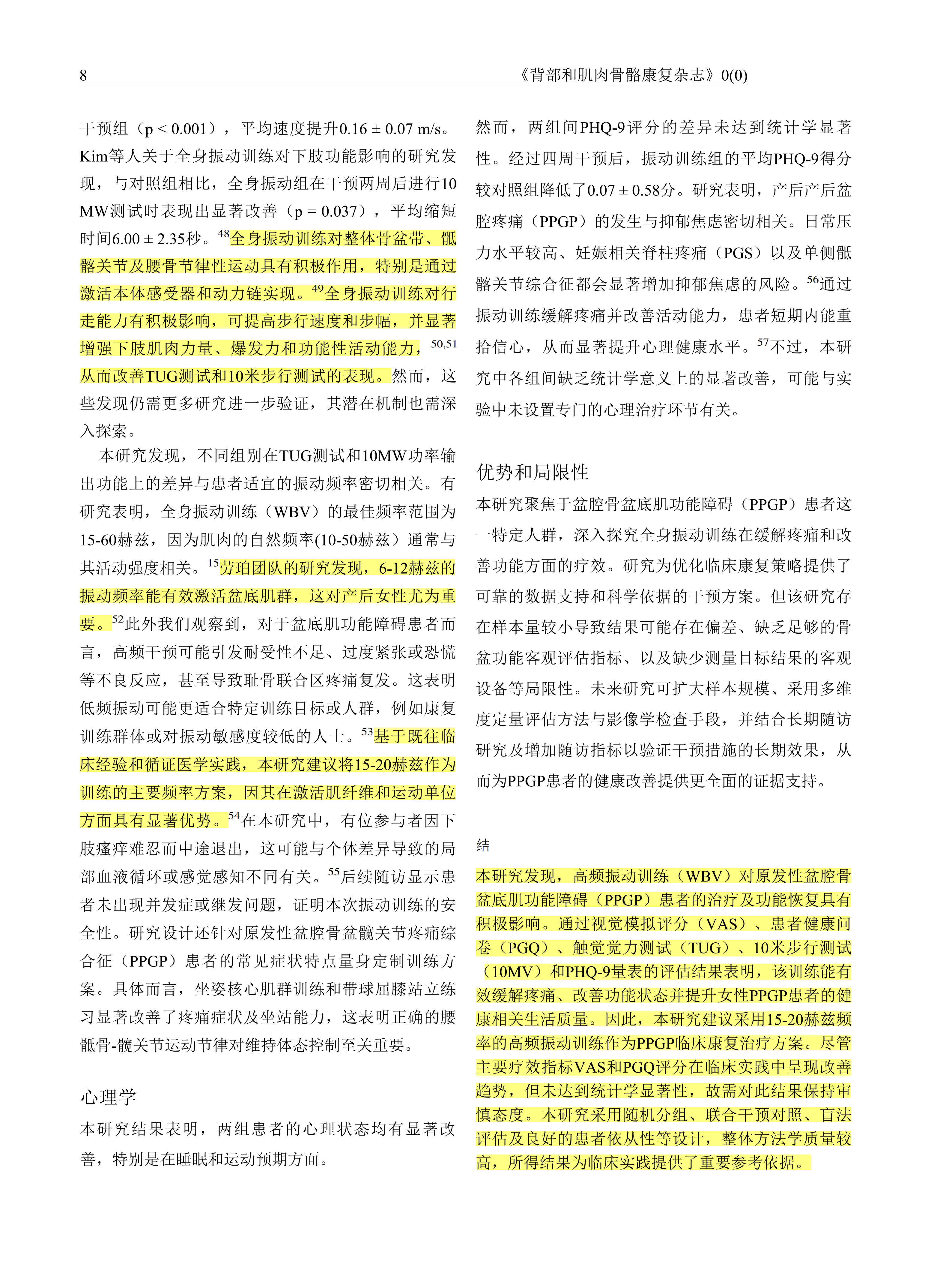 ●建议将15-20 Hz的WBV训练作为PPGP临床康复的补充手段。