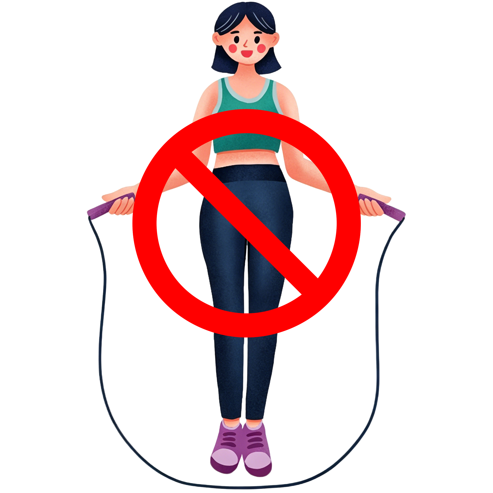 高强度有氧:比如快速跑、跳操、跳绳,会增加腹部压力,加重腹直肌分离,同时给松弛的盆底肌“雪上加霜”,漏尿会更严重;